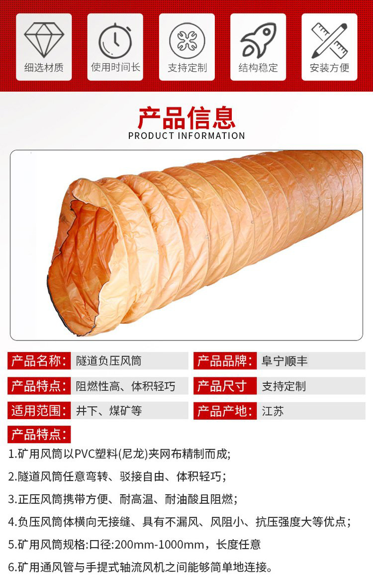 阜寧縣順豐礦用器材有限公司專業生產銷售風筒、風筒布、壓風自救器、隔爆水袋水槽、風筒連接器等礦用產品,廠家直銷,價格優惠,品質保證,咨詢熱線:18361633988